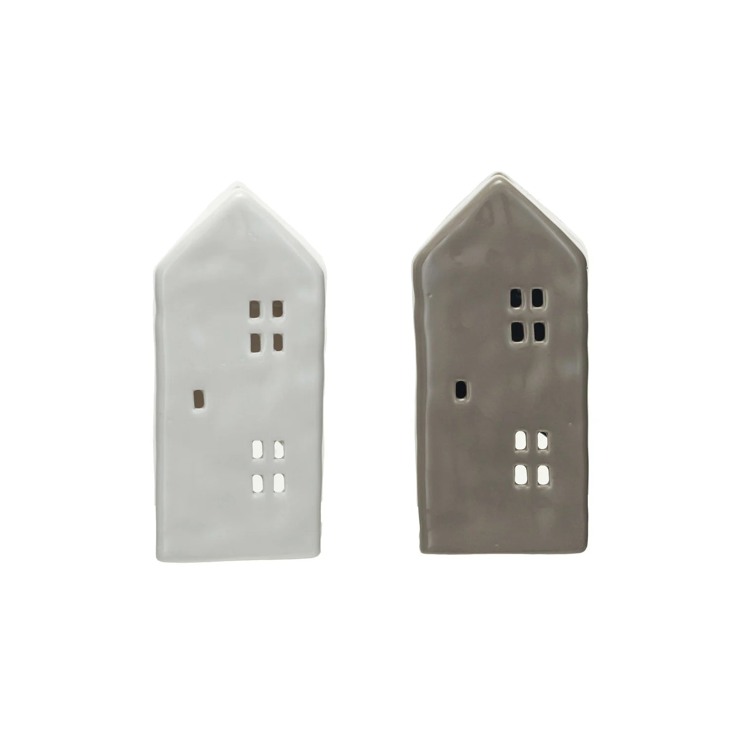 3-1/4" Square x 7-1/4"H Stoneware House Tealight Holder, 2 Colors