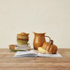 6-1/4" Round x 4"H Stoneware Pumpkin Shaped Butter Dish w/ Stem Handle, Reactive Glaze, Orange Color, Brown & Beige (Each One Will Vary)