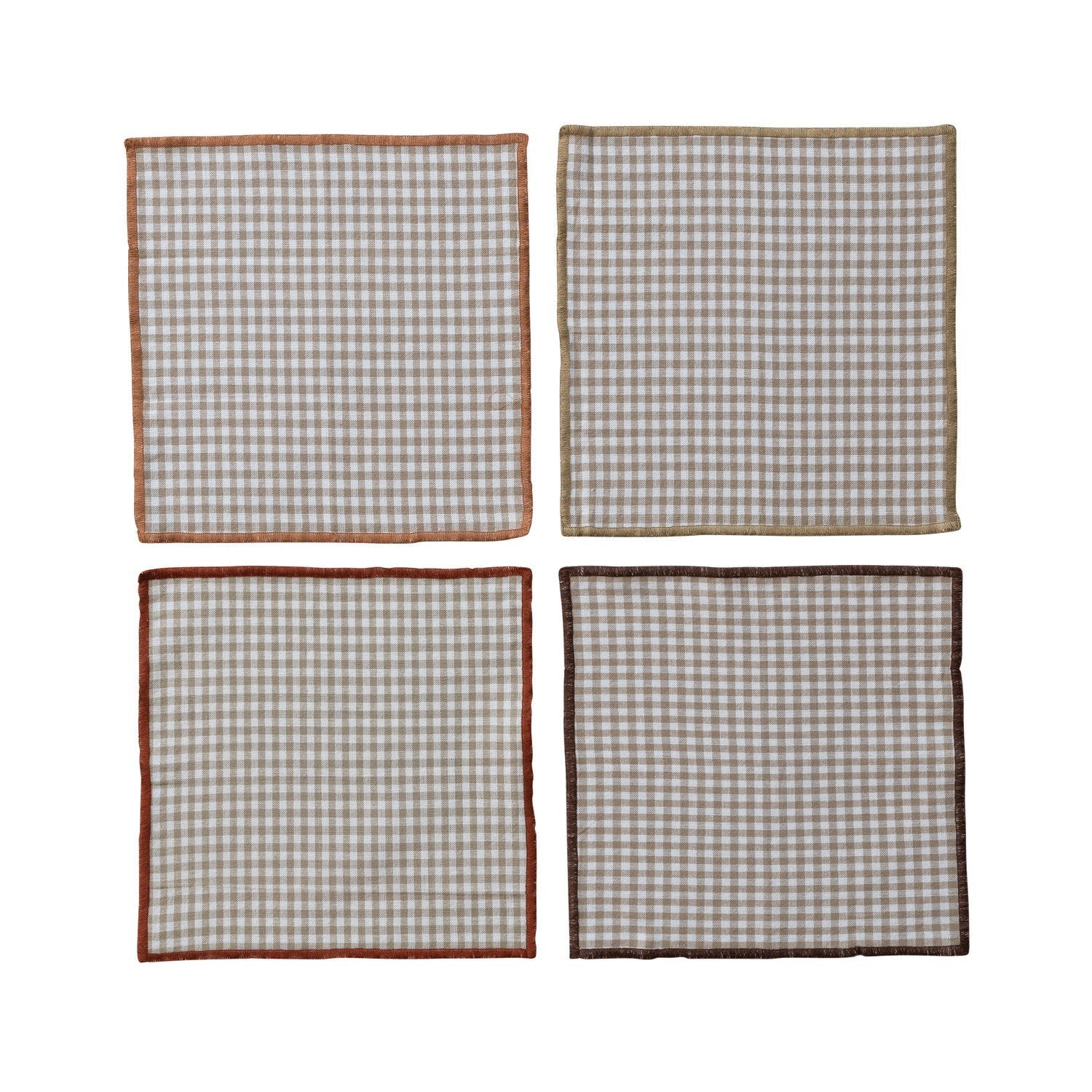 Cocktail Napkins with Stitched Edge & Jute Tie with Metal Ring, Set of 4