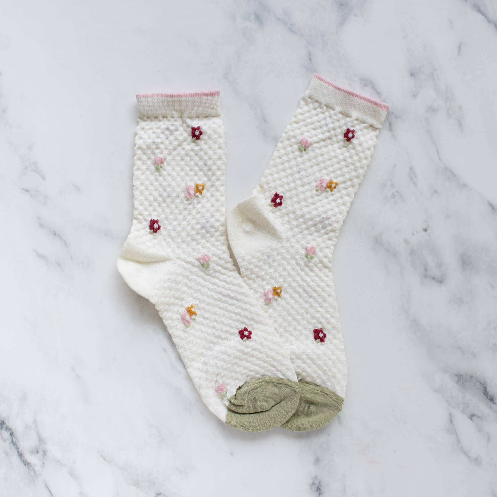 Introducing our Embossed Flower Casal Socks, designed for ultimate comfort with a touch of style. Each pair features a delicate flower point design, adding a subtle yet elegant touch to any outfit. Expertly crafted for your satisfaction, these socks offer both comfort and style in one.