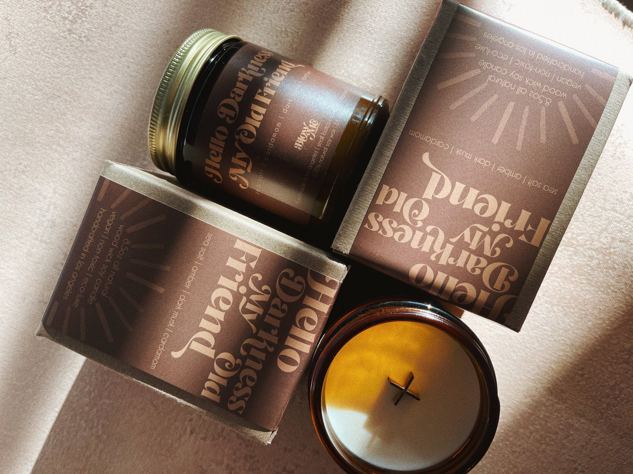 8 oz all natural soy candle with a wood wick. Approximately 50+ hours of burn time.