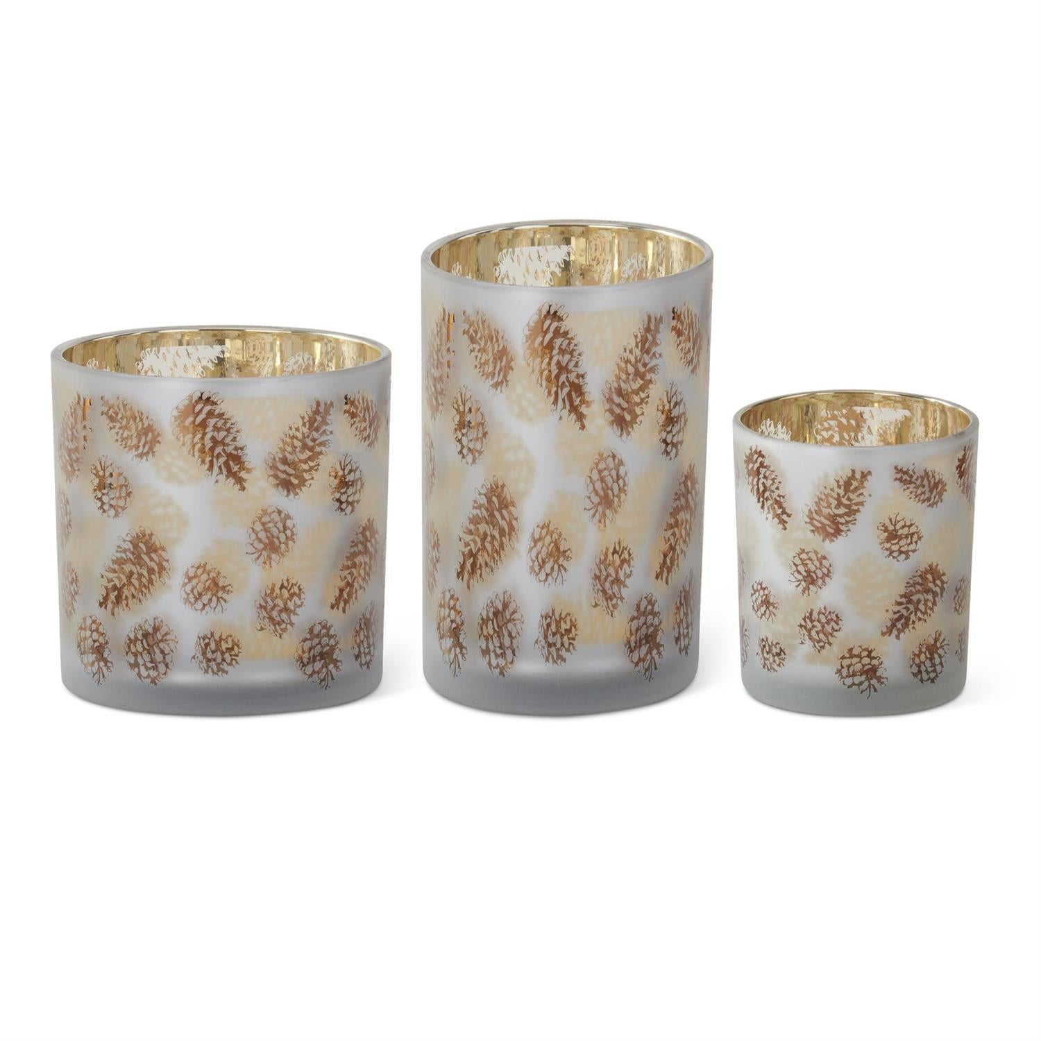 Frosted White Glass Gold Pinecone Votive