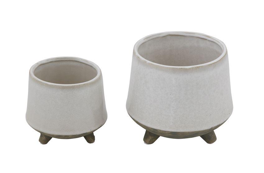 Large: 6 1/2" Round x 5 3/4"H Stoneware Flower Pot w/ feet. Holds a 6" Pot