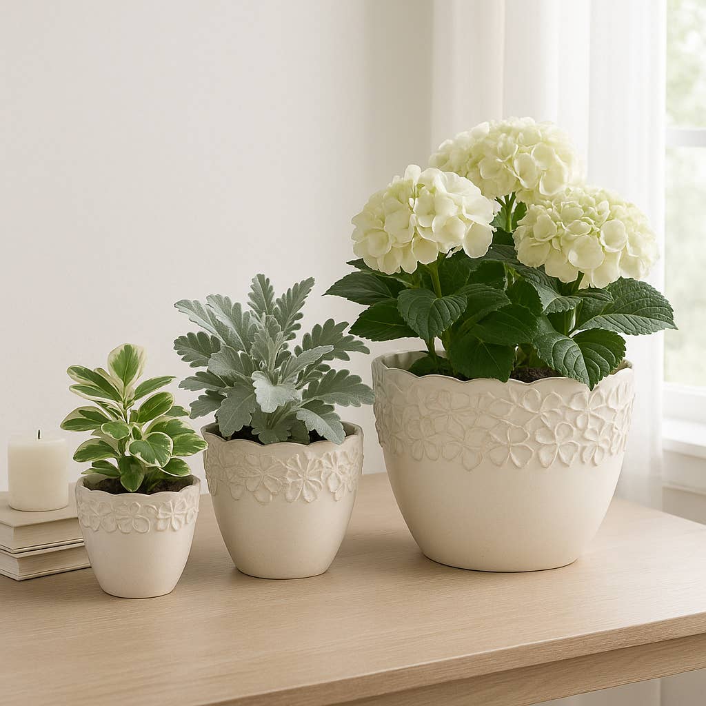 • VERSATILE SET OF THREE - Includes three different sizes (8", 9", 11") to accommodate a variety of plants, from succulents to larger greenery, making them perfect for home or garden use.