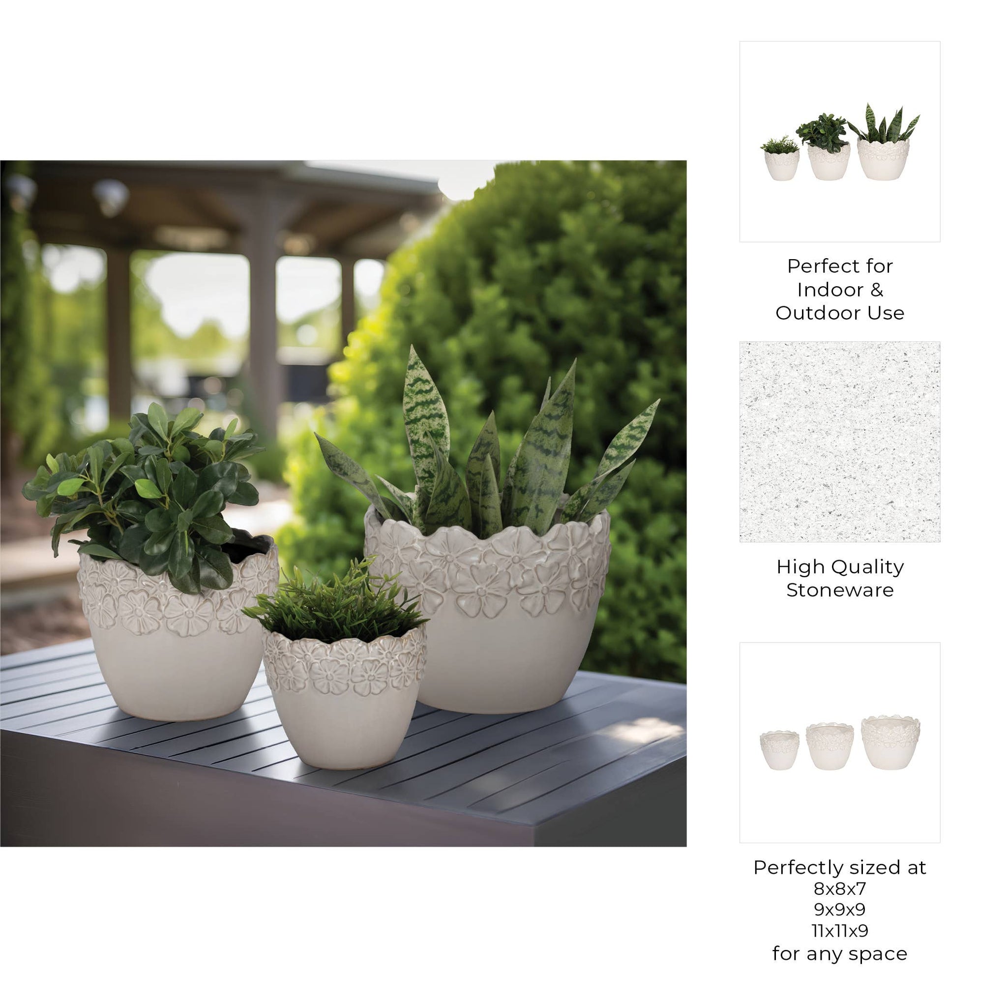 • ELEGANT STONEWARE DESIGN - Crafted from premium ceramic stoneware, these planters offer a durable and sophisticated design that enhances any indoor or outdoor space with timeless charm.